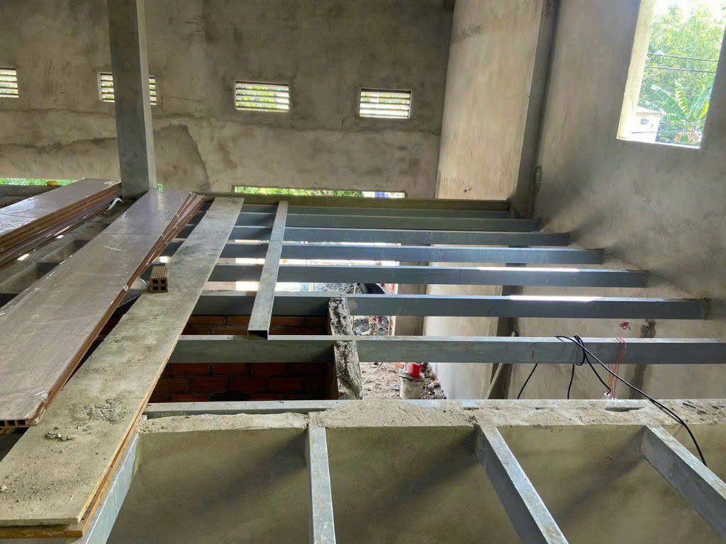 Vách ngăn: 400x2950x26 Chân đế: 80x50x2950 Sàn chịu lực làm gác siêu cứng, siêu trọng tải 700kg/ m2Thả đà tiêu chuẩn 50cmQui cách 33.3cm x dày 2.2cm x dài 10 mét